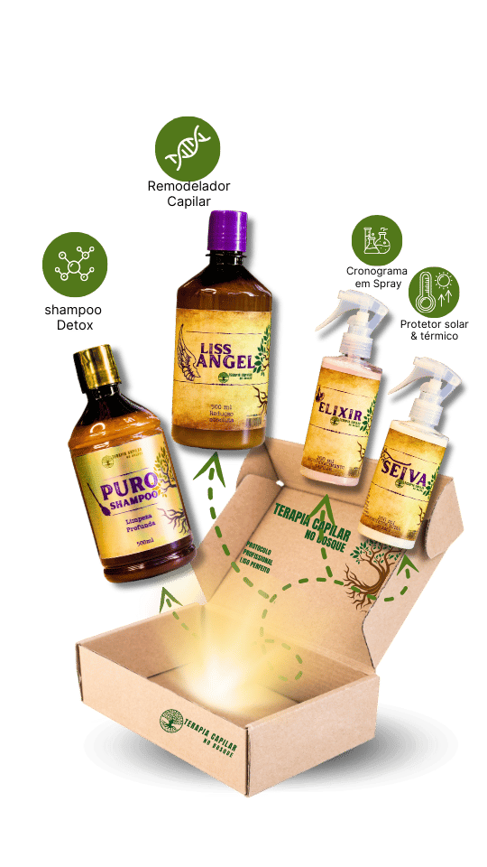 Existem dois kits disponíveis: o Salão na Caixa LISS ANGEL e o Salão na Caixa RENASCENCE. O LISS ANGEL é ideal para quem busca um efeito liso natural e vem com um remodelador de fibra capilar, shampoo detox, elixir capilar e seiva protetora. Já o RENASCENCE é voltado para a restauração profunda dos cabelos danificados, especialmente aqueles com emburrachamento ou corte químico, proporcionando uma revitalização completa e manutenção dos fios por até 6 meses.